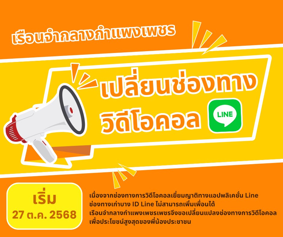 เรือนจำกลางกำแพงเพชรเพชรจึงขอเปลี่ยนแปลงช่องทางการวิดีโอคอล